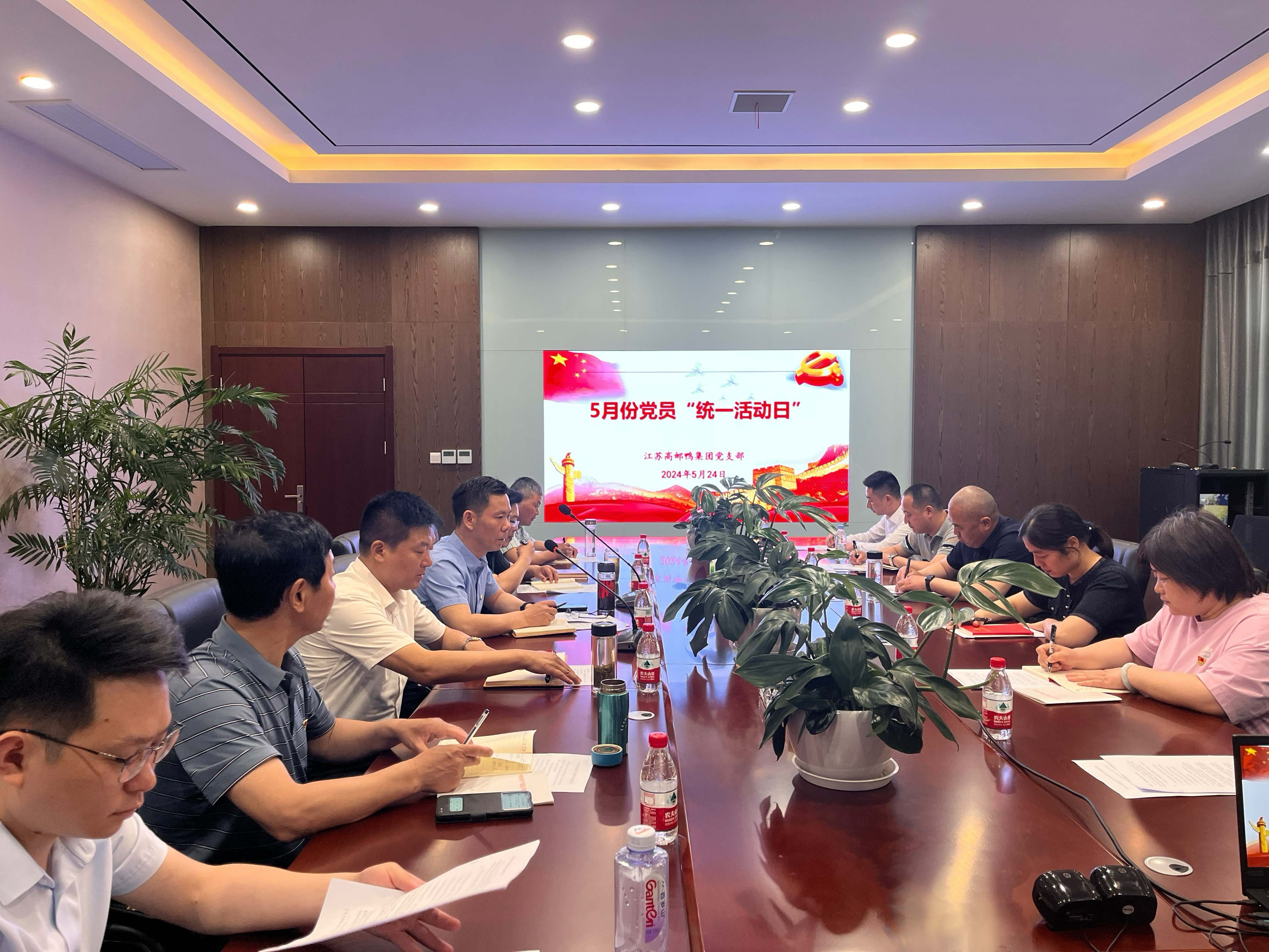 5月24日上午,高郵鴨集團黨支部開展5月份“統一活動日”,支部全體黨員參加會議,會議由梁勇書記主持。