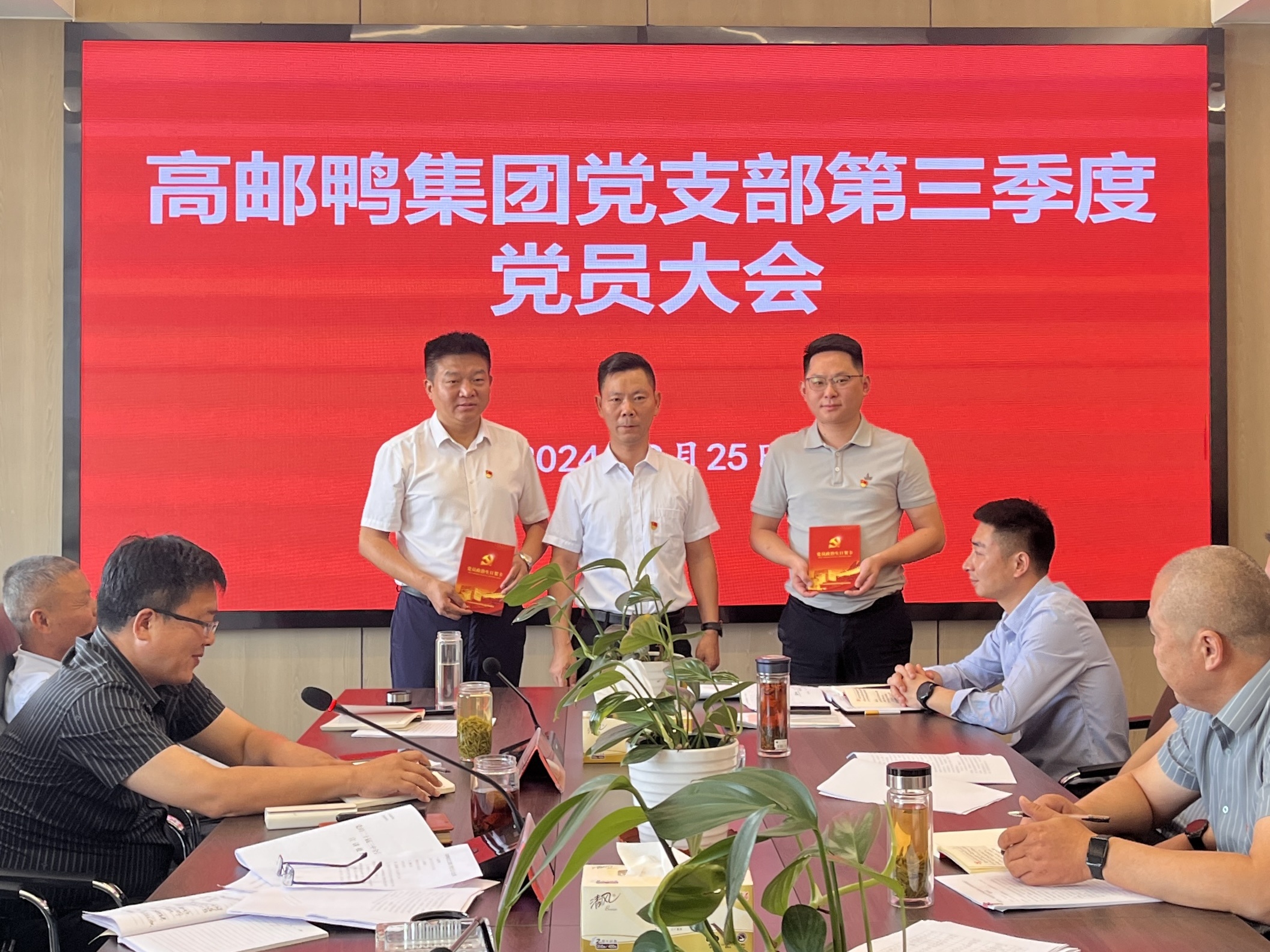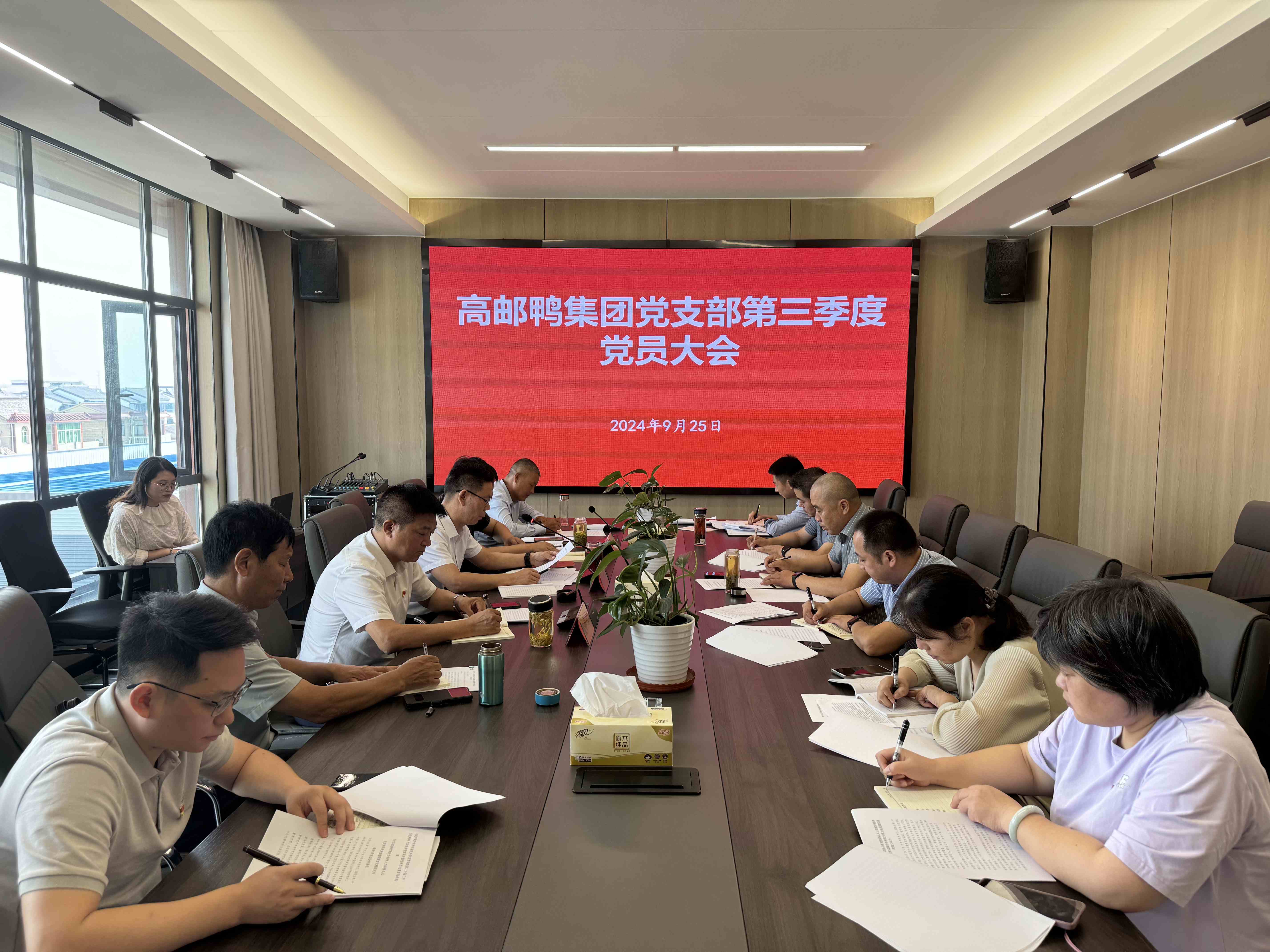9月25日上午,高郵鴨集團黨支部召開第三季度黨員大會,支部全體黨員參加會議,會議由梁勇書記主持。