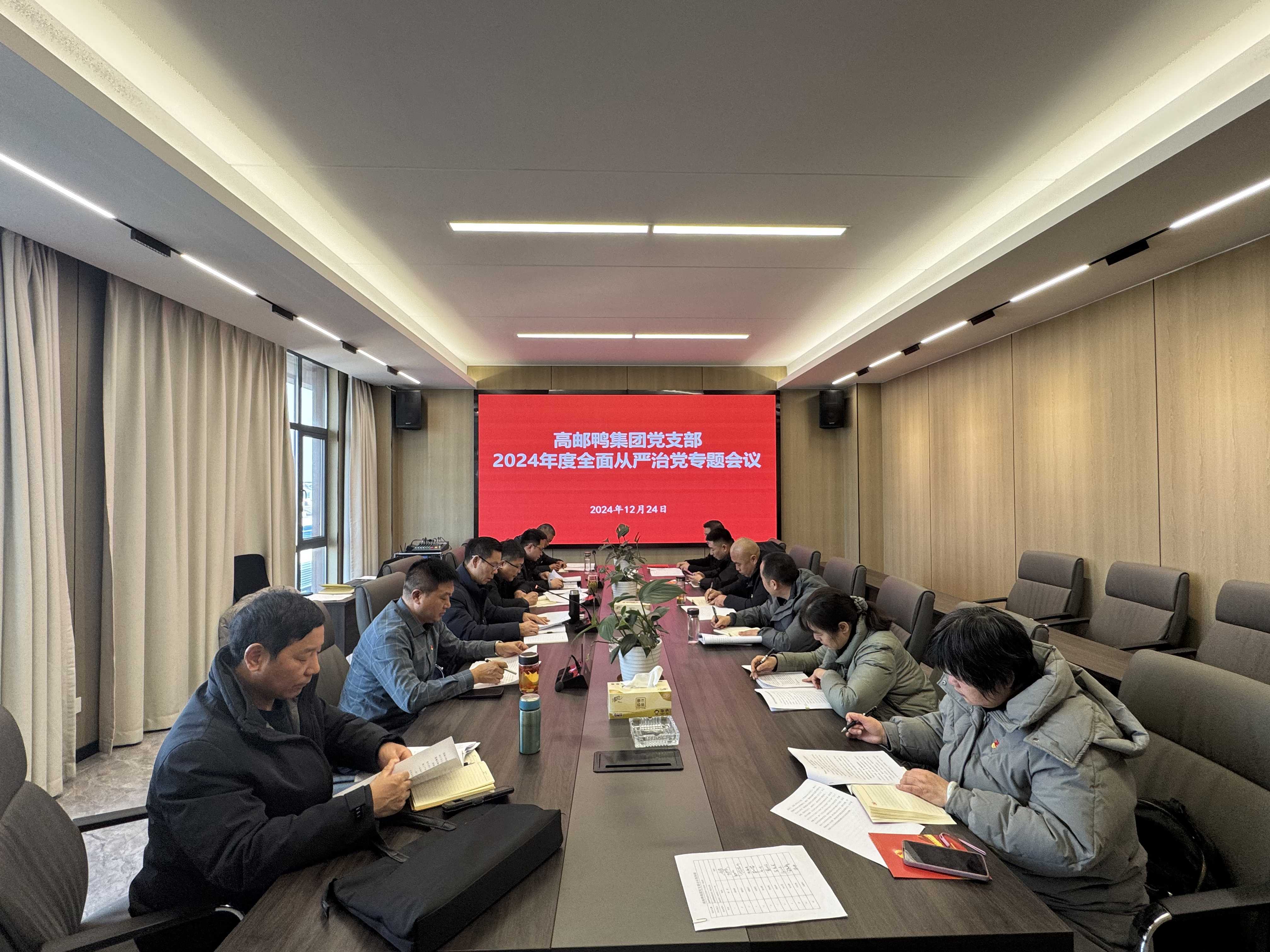 12月24日上午,高郵鴨集團黨支部召開2024年度全面從嚴治黨專題會議,會議由梁勇書記主持,支部全體黨員參加會議。