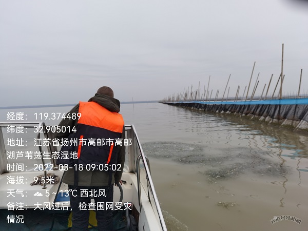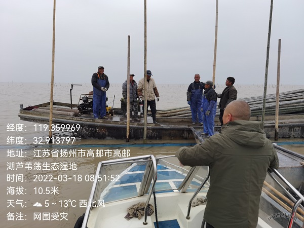 3月18日上午,高郵鴨集團(tuán)副總經(jīng)理、漁業(yè)基地負(fù)責(zé)人沈春忠第一時(shí)間率相關(guān)人員深入湖區(qū)生產(chǎn)一線督導(dǎo)檢查圍網(wǎng)受災(zāi)情況。