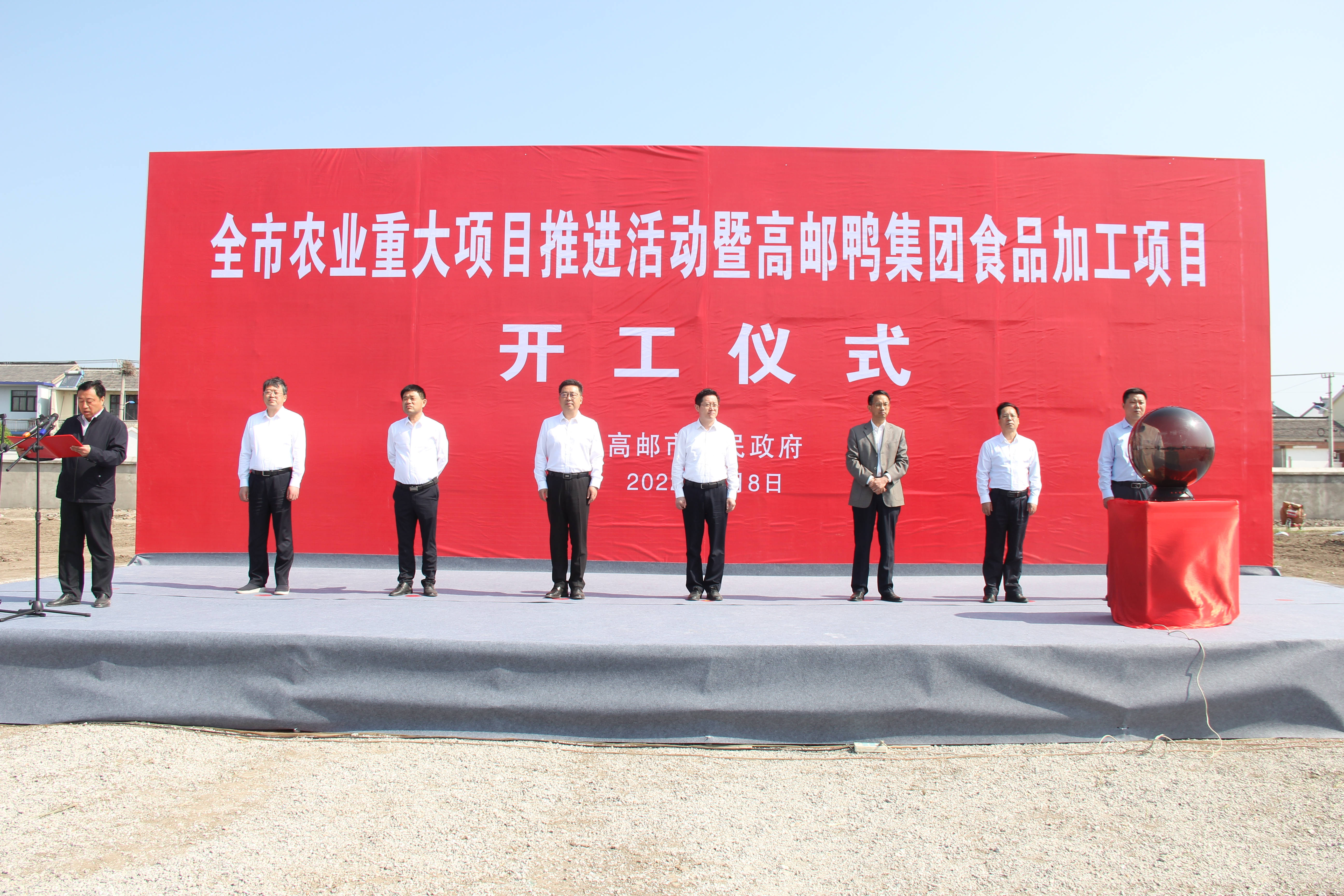 為深入實施鄉村振興戰略,做強高郵鴨業經濟產業鏈,8日上午,全市農業重大項目推進活動暨高郵鴨集團食品加工項目舉行開工儀式,市委副書記鄭志明、市人大常委會副主任潘建奇、市政協副主席張擁軍參加儀式并共同啟動項目開工水晶球,市水投集團董事長秦超,水投集團副總經理、鴨集團董事長劉廣游參加開工儀式。