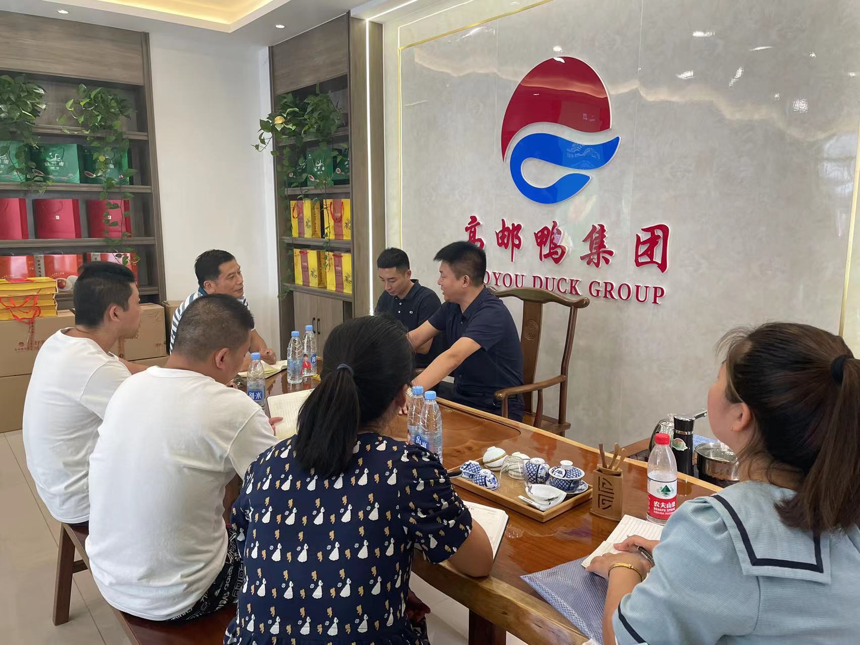 朱總一行先后參觀總部直營門店與高郵鴨集團食品加工公司生產線,期間就雙方銷售運營模式及生產線狀況等進行了深刻的交流學習,并在銷售公司副總經理王志新的講解下就前幾日順利完成的東方甄選平臺合作的相關事宜進行了深入探討,贏得對方的一致認可。