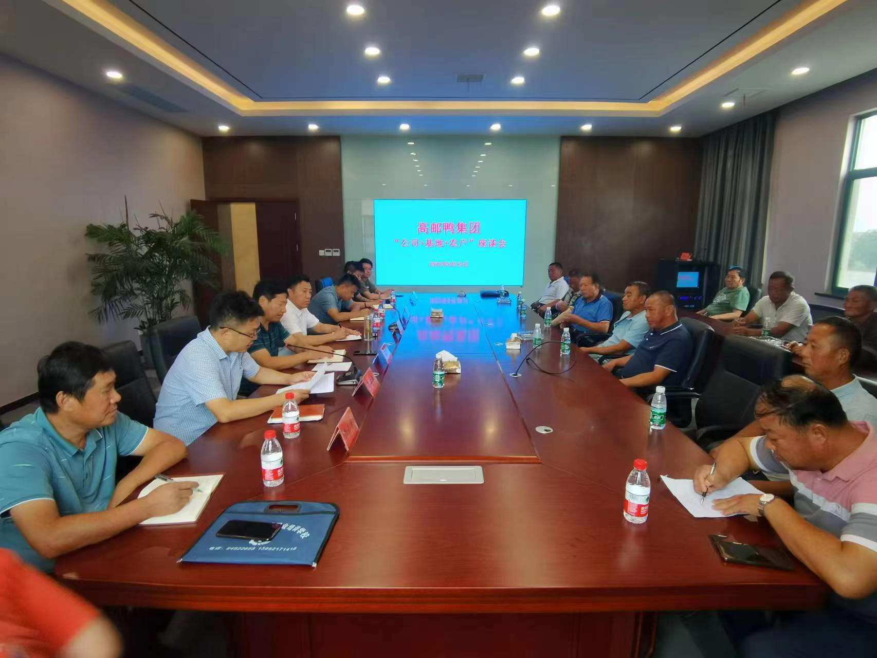 8月25日上午,高郵鴨集團召開“公司+基地+農戶”座談會。水投集團副總經理、鴨集團董事長劉廣游,水投集團副總經理黨定龍及鴨集團相關班子成員參加會議。