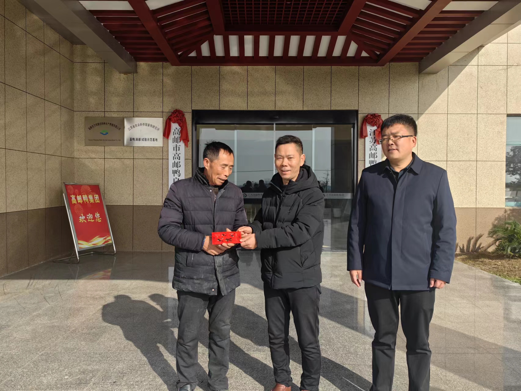 1月19日上午,在新春佳節即將來臨之際,高郵鴨集團領導班子分別對鴨集團食品加工公司、湖鴨養殖公司及漁業公司進行走訪,并對企業困難職工進行慰問。