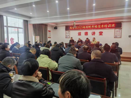 2月13日,為全面提升高郵鴨產業從業人員素質,加快高郵鴨養殖新技術示范推廣,樹立高郵鴨相關生產加工企業及從業人員的安全意識,促進高郵鴨產業健康可持續發展,高郵市高郵鴨良種繁育中心同高郵市農業農村局于送橋鎮舉辦2023年高郵鴨養殖技術培訓班。高郵市高郵鴨良種繁育中心主任薛敏開主任主持會議,并邀請江蘇農牧科技職業學院朱善元校長、省農科院黃紅英研究員培訓講課,送橋鎮、菱塘鄉農業農村局畜牧獸醫條線負責人、鄉村獸醫、村級防疫員以及高郵鴨養殖(場)戶代表、高郵鴨相關生產加工企業代表,高郵鴨養殖的小農戶,共120余人參加會議。