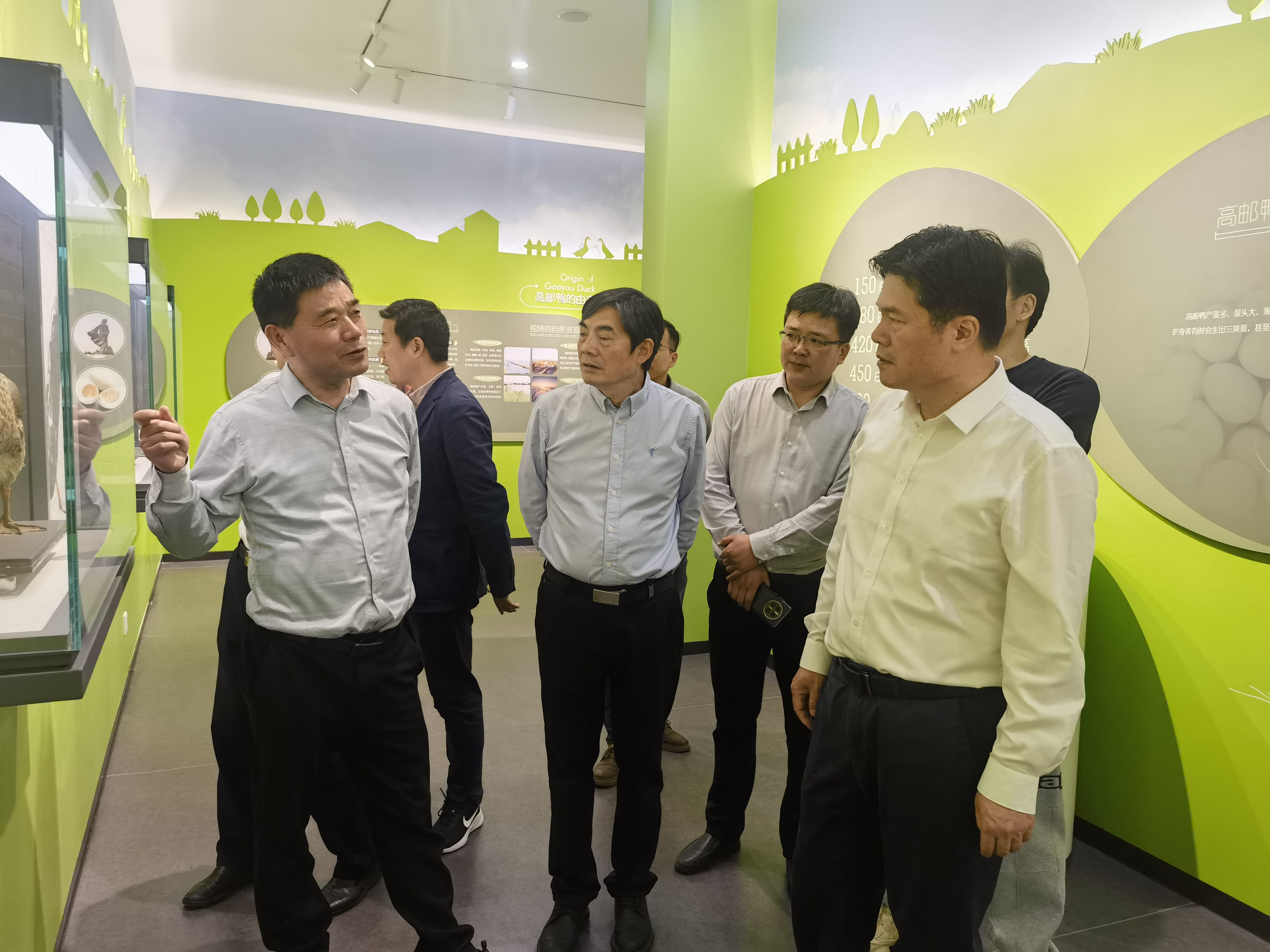 在基地負(fù)責(zé)人詳細(xì)匯報(bào)了基地的養(yǎng)殖規(guī)模、品種選育和疫病防控等情況,實(shí)地探訪了高郵鴨文化展廳、養(yǎng)殖區(qū)域以及蛋庫等重要區(qū)域,市農(nóng)業(yè)農(nóng)村局局長凌高玉一行對(duì)高郵鴨基地在產(chǎn)學(xué)研究、品牌建設(shè)和協(xié)同推廣方面所取得的成績給予了高度贊揚(yáng),并強(qiáng)調(diào)要繼續(xù)保持和發(fā)揚(yáng)這些優(yōu)勢(shì),一是持續(xù)加大技術(shù)創(chuàng)新投入,不斷提升核心競爭力;二是持續(xù)加強(qiáng)品牌建設(shè),打造更具影響力的高郵鴨品牌;三是持續(xù)推進(jìn)推廣應(yīng)用,推動(dòng)鴨產(chǎn)業(yè)基地實(shí)現(xiàn)更高質(zhì)量的發(fā)展。