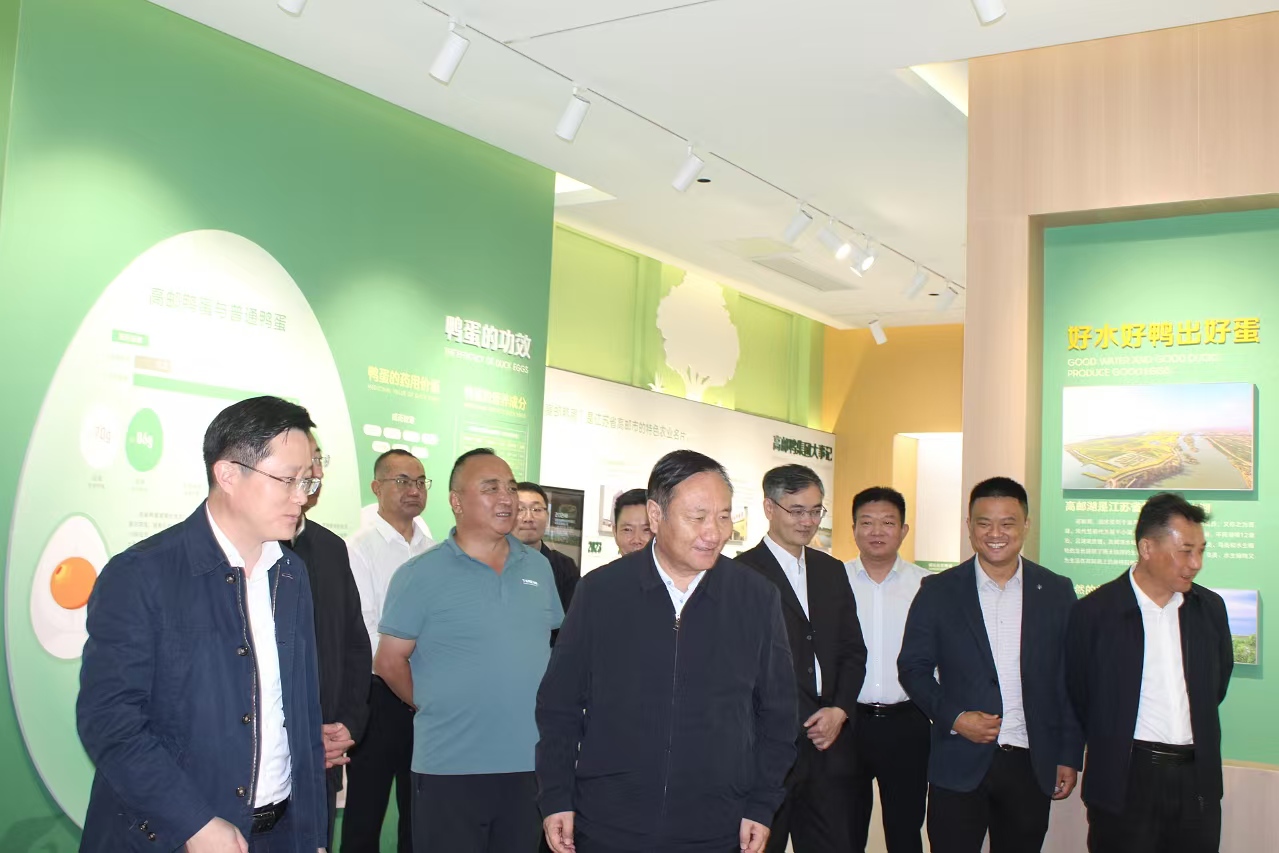 考察組一行先后走進高郵鴨集團企業文化展廳、數字化平臺,詳細了解高郵鴨蛋的歷史淵源、鴨集團大事記、好水好鴨出好蛋、產品加工、品牌宣傳和數字化平臺等相關情況。