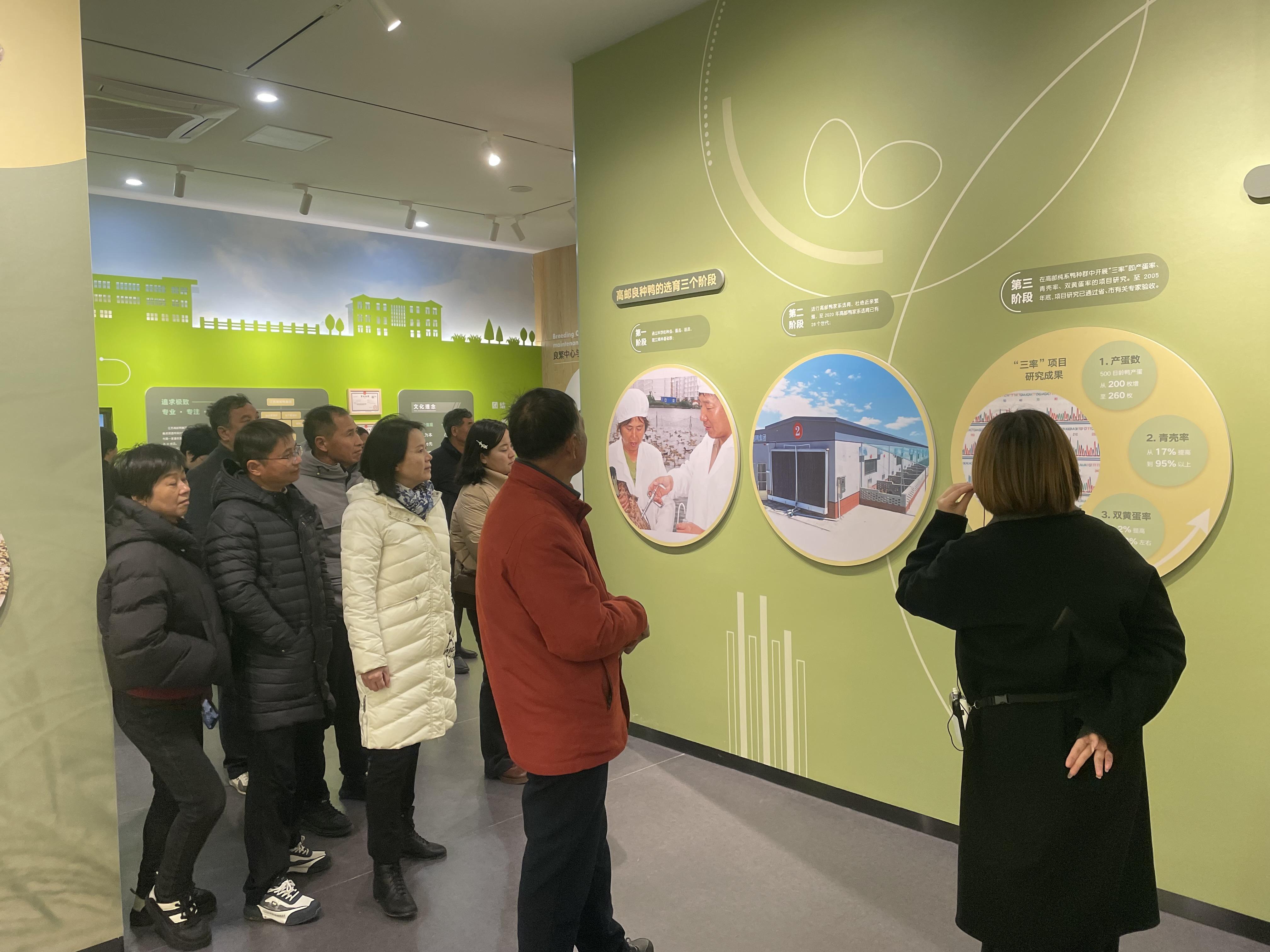 培訓(xùn)人員首先參觀了高郵鴨二期半集約化散養(yǎng)舍,了解高郵鴨養(yǎng)殖現(xiàn)狀及產(chǎn)能特性。在養(yǎng)殖基地展廳認(rèn)真聽取了關(guān)于高郵鴨集團發(fā)展史講解,學(xué)員們還與基地相關(guān)技術(shù)人員進行溝通交流,詳細詢問養(yǎng)殖過程中的技術(shù)要點和管理經(jīng)驗,并探討如何將高郵鴨的養(yǎng)殖經(jīng)驗實際應(yīng)用到各自農(nóng)村集體經(jīng)濟組織的發(fā)展中。