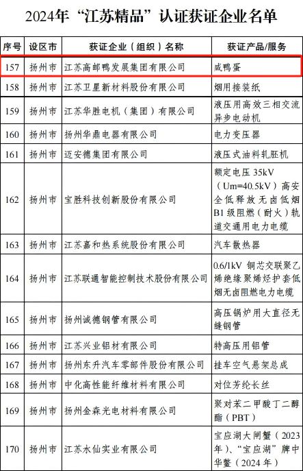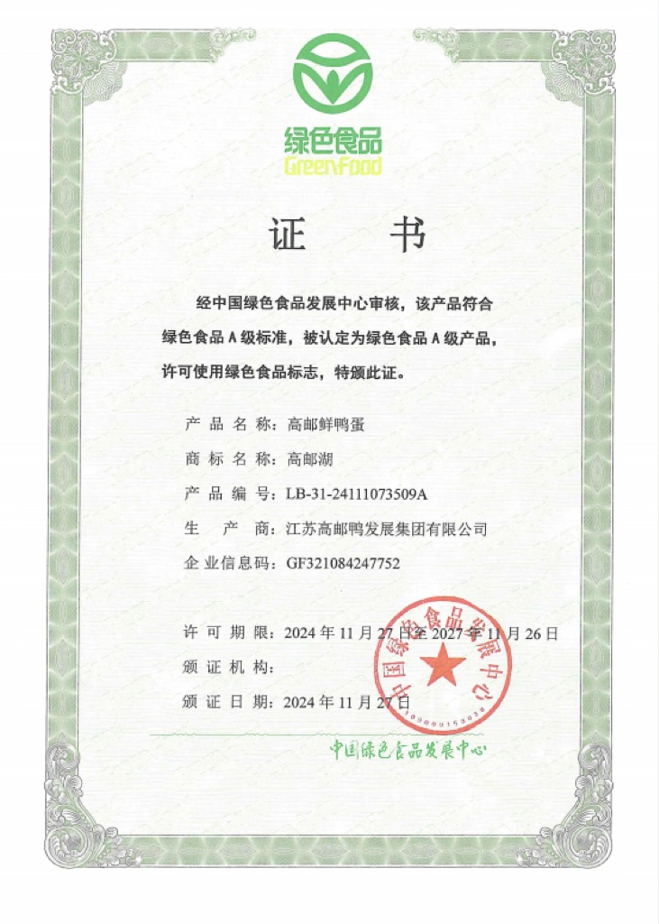 近日,中國(guó)綠色食品發(fā)展中心、江蘇省質(zhì)量發(fā)展委員會(huì)辦公室分別公布了“綠色食品”及“江蘇精品”認(rèn)證名單,高郵鴨集團(tuán)“高郵湖”牌系列產(chǎn)品分獲兩項(xiàng)殊榮。“綠色食品”是對(duì)產(chǎn)品的產(chǎn)地環(huán)境、生產(chǎn)過(guò)程、產(chǎn)品質(zhì)量等方面進(jìn)行嚴(yán)格要求認(rèn)證,是消費(fèi)者公認(rèn)的優(yōu)質(zhì)、安全、環(huán)保的食品標(biāo)志。“江蘇精品”則是江蘇省為推動(dòng)品牌建設(shè)、提升產(chǎn)品和服務(wù)質(zhì)量而設(shè)立的高標(biāo)準(zhǔn)認(rèn)證體系,旨在表彰江蘇省內(nèi)具有卓越品質(zhì)、創(chuàng)新能力和市場(chǎng)競(jìng)爭(zhēng)力的企業(yè)和產(chǎn)品。