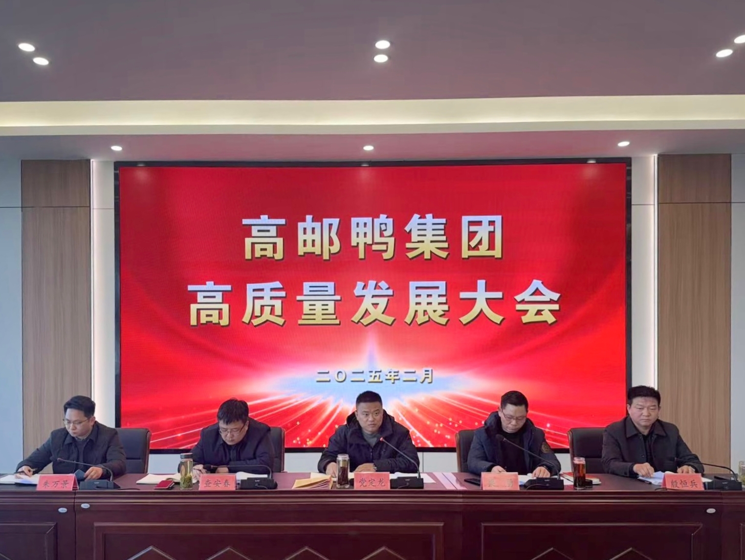 律回春暉漸,萬象始更新。2月8日下午,高郵鴨集團召開高質量發展大會,總結回顧2024年工作經驗,謀劃部署2025年工作任務,激勵干部職工強化思想破冰、務實破題、行動破局,以觀念“裂變”催生發展“蝶變”,以實干“善為”確保工作“善成”。城投集團副總經理、鴨集團董事長黨定龍出席會議,鴨集團全體班子成員、總部人員、下屬企業管理人員、獲獎人員及職工代表參加會議,會議由梁勇總經理主持。