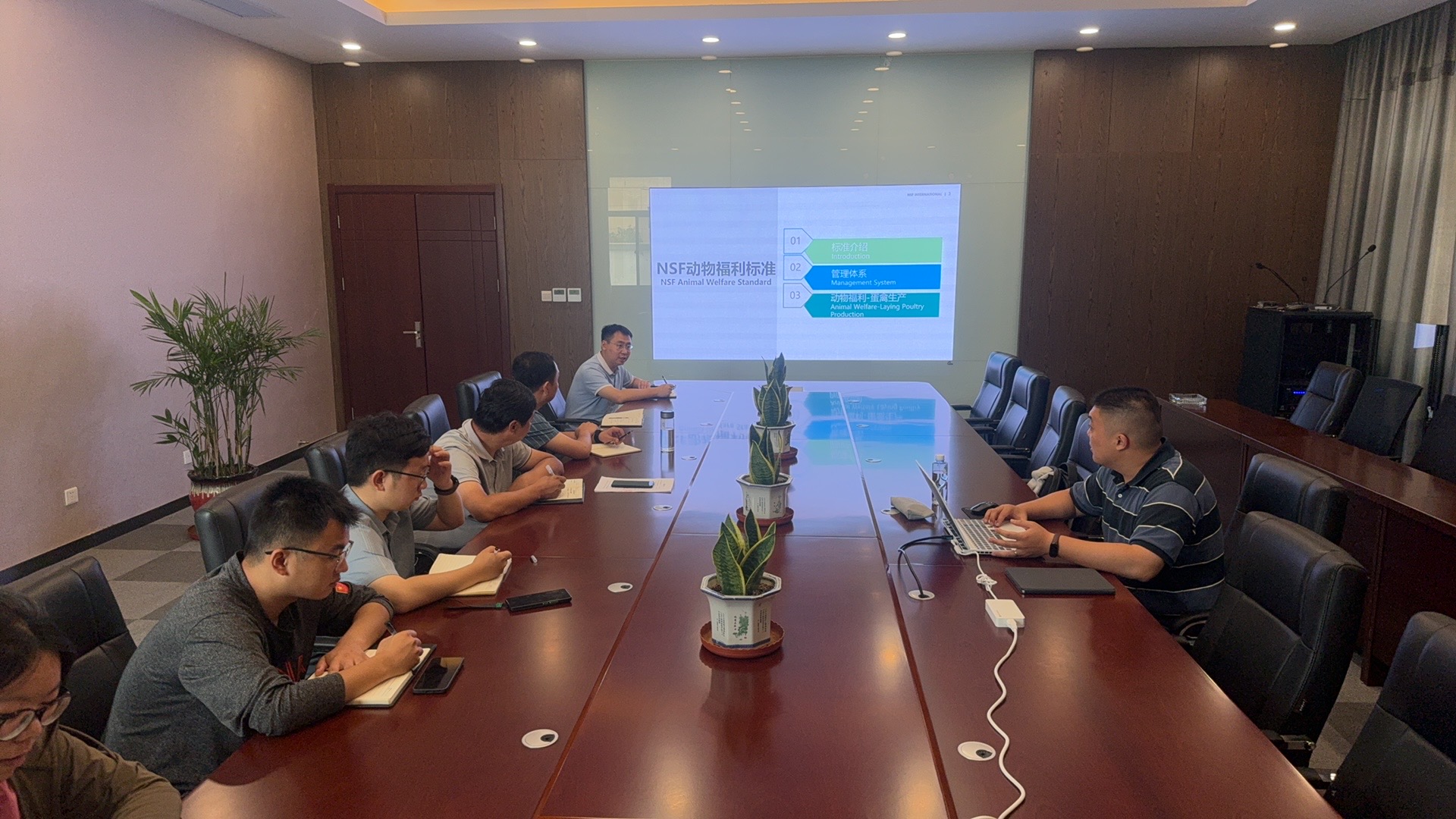 為推進產品出口海外認證資質相關工作,8月1日,高郵鴨集團聘請第三方檢測機構對養殖基地開展NSF動物福利認證現場輔導,養殖基地生產負責人及相關人員參加活動。